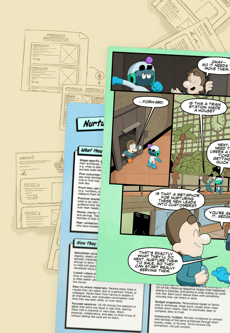 Trained to uncover what your audience actually wants — without months of “discovery phases” or clever–sounding guesswork.